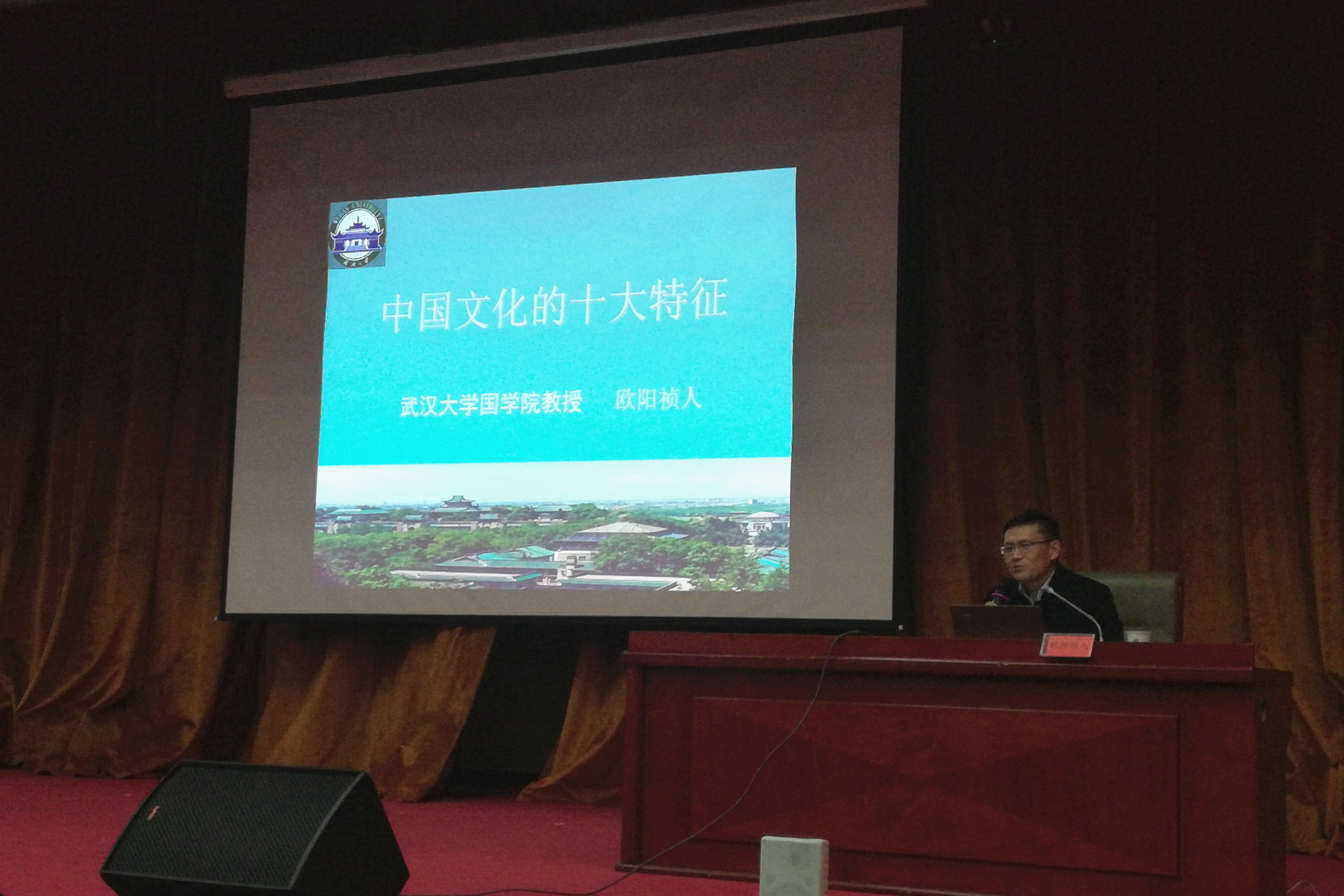 本网讯 2月28日下午,第六期“通识大讲堂”在图书馆学术报告厅举行,武汉大学国学院教授欧阳祯人应邀作关于《中国文化的十大特征》的讲座。本次讲座,欧阳祯人教授以中国文化的十大特征为主题从多个方面讲述了中国文化,带领同学们思考。