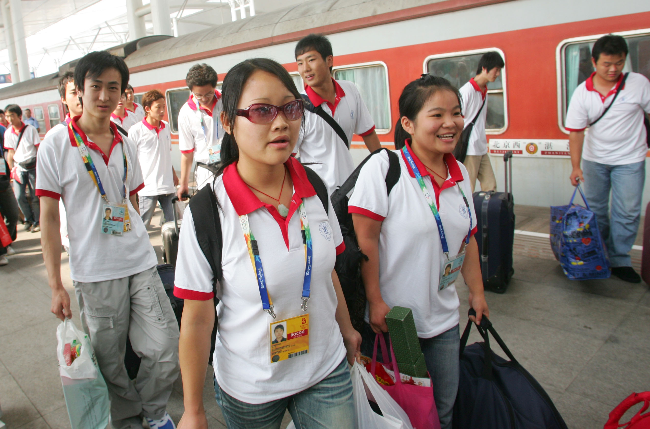 “热烈欢迎pg电子官网奥运服务师生凯旋”的条幅在火车站台拉起,接站的人群都站在站台旁兴奋而焦急地等待。师生们一走下火车,便被鲜花和照相机所包围,“你们辛苦了”王清华副院长握着师生们的手亲切地慰问着。每一位同学都抑制不住返家的激动,他们挥着手,高声的欢呼“我们回来了”。