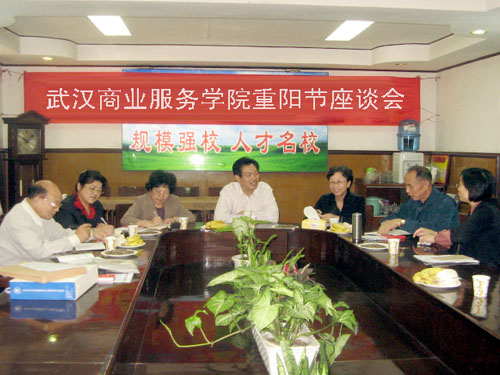 2008年10月7日上午,学校老同志代表重阳节座谈会在汉阳校区举行。会上,校领导徐俊才同志通报了学校近期的工作以及建设发展的新进展,与老同志们进行了亲切座谈。他希望大家继续支持学校的建设和发展,共同把学校建设地更加美好。并祝全校老同志节日愉快,身体健康。组织人事部、离退休工作处的负责同志也参加了座谈。