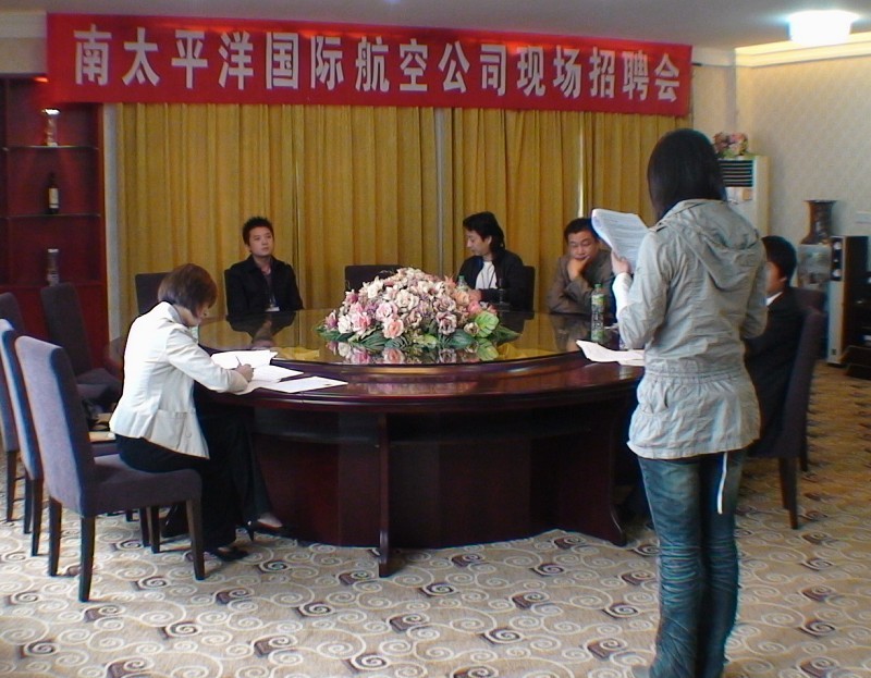 10月28日上午,南太平洋国际航空公司来校举办现场招聘会,来自pg电子官网旅游系2006级航空服务专业、NEP航空服务专业和其他系部的150余名学生参加了此次现场招聘会。