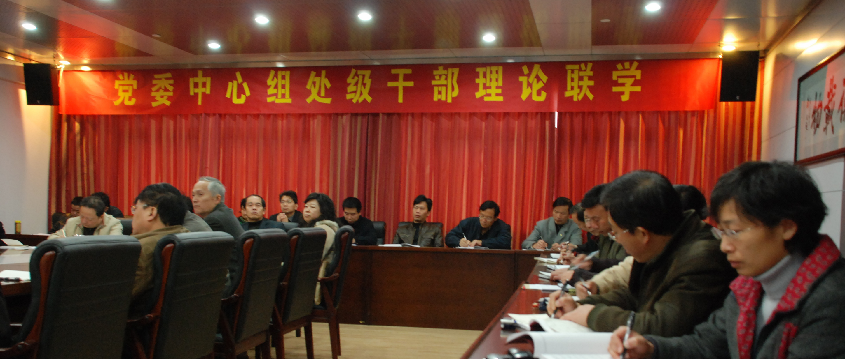 12月4日上午,校党委中心学习组与处级干部在508会议室进行理论联学,听取了改革开放30年专题报告。党委中心学习组组长、院长张元树同志主持联学并作重要讲话。党委中心学习组全体成员参加了联学。