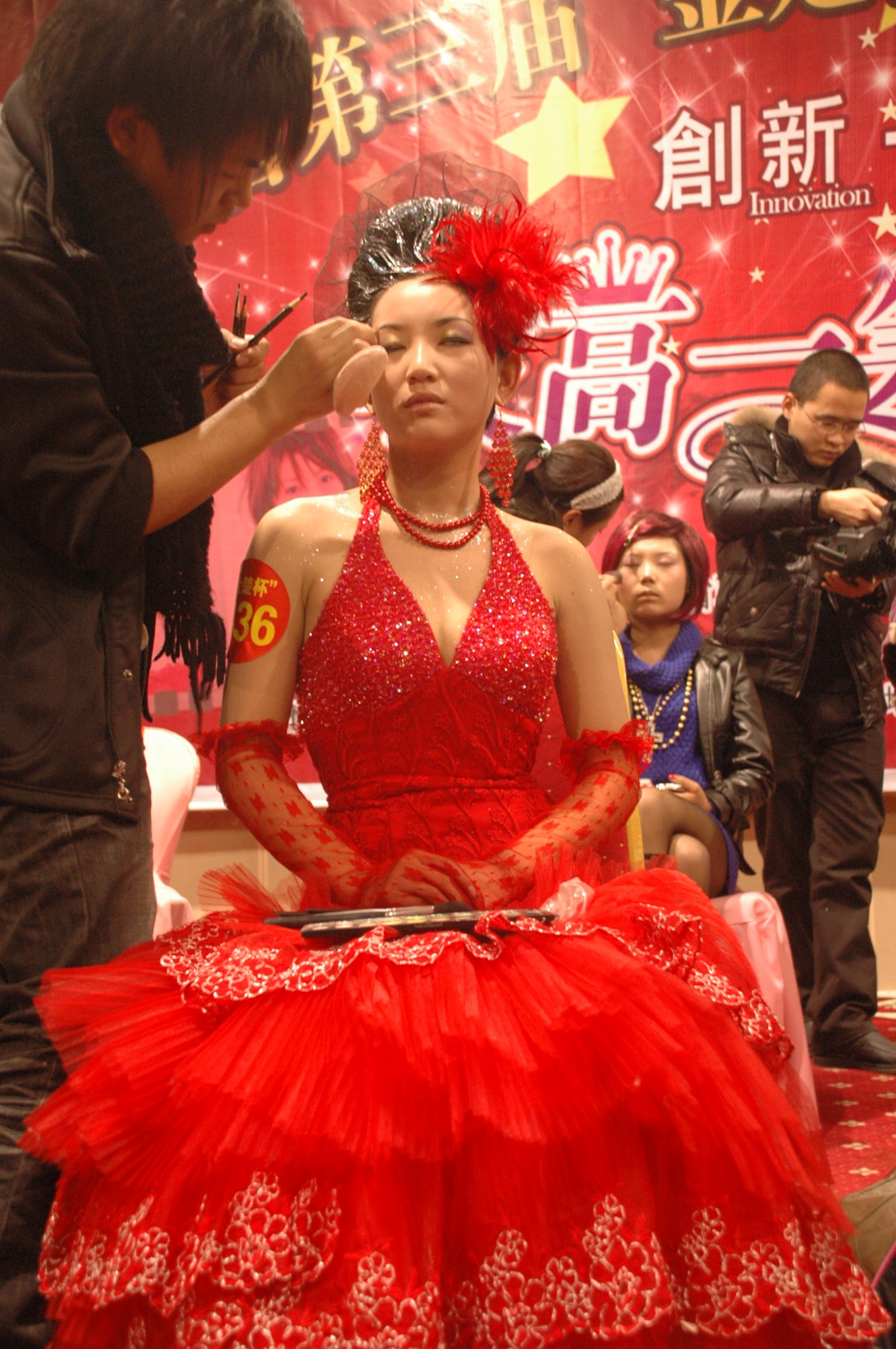 作为一个在校生,又是一个小伙子,赵体增在女性居多的化妆比赛的参赛选手中显得“鹤立鸡群”。只见他打开随身携带的工具包,里面插满了大小不一的化妆刷,还有五颜六色的化妆品。伴着化妆刷快速起落,身前的模特顿时变成了美丽的公主。平实的生活妆容,高贵典雅的造型风格,给评委留下了深刻印象。