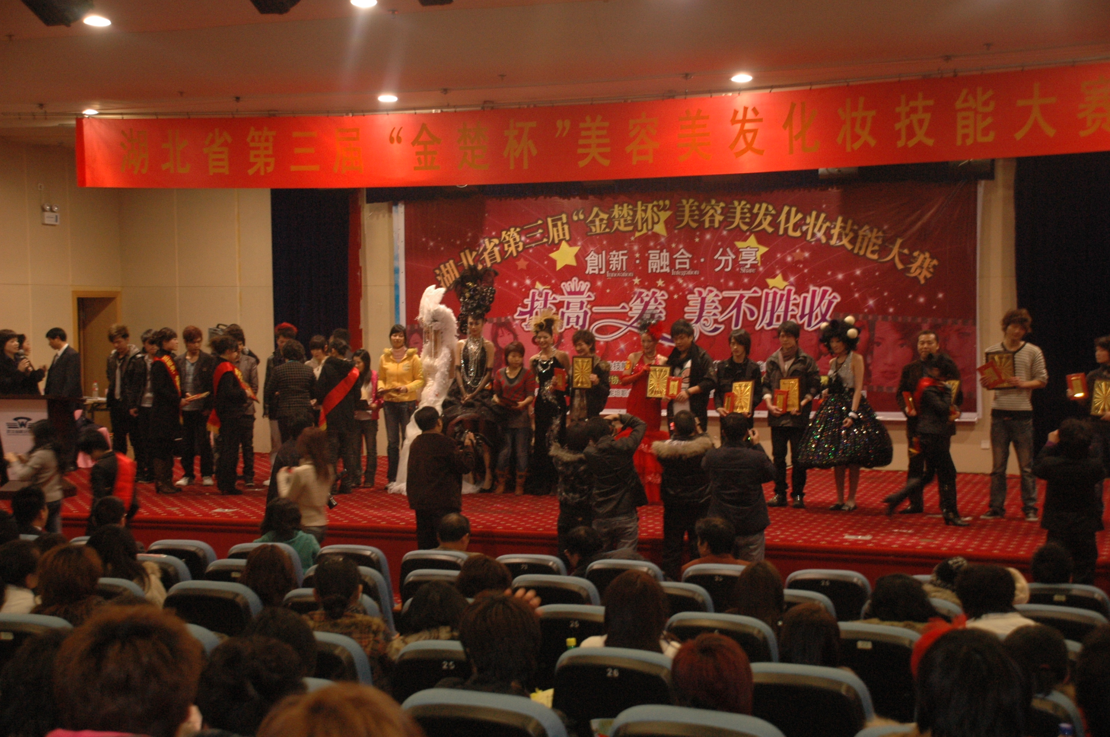 20多平米的舞台,密密麻麻站了30多个素面朝天的女孩。随着裁判一声哨响,这些女孩立刻换了一张面容,个个变得妩媚娇艳。这是12月15日湖北省第三届“金楚杯”美容美发化妆技能大赛的一个画面。pg电子官网人物形象设计专业的大三学生赵体增夺得了晚宴状金奖。