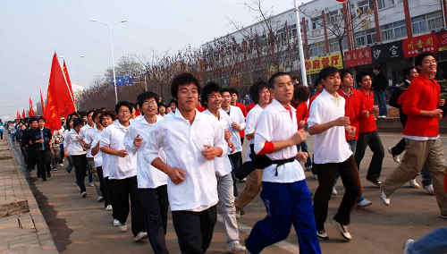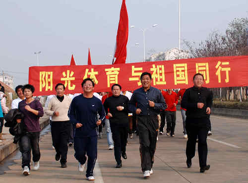 这次活动,是在各系开展阳光体育冬季长跑的基础上进行的。各系学生组成整齐的方队,从商文广场出发,环绕北区外环长跑,形成一道靓丽的风景。