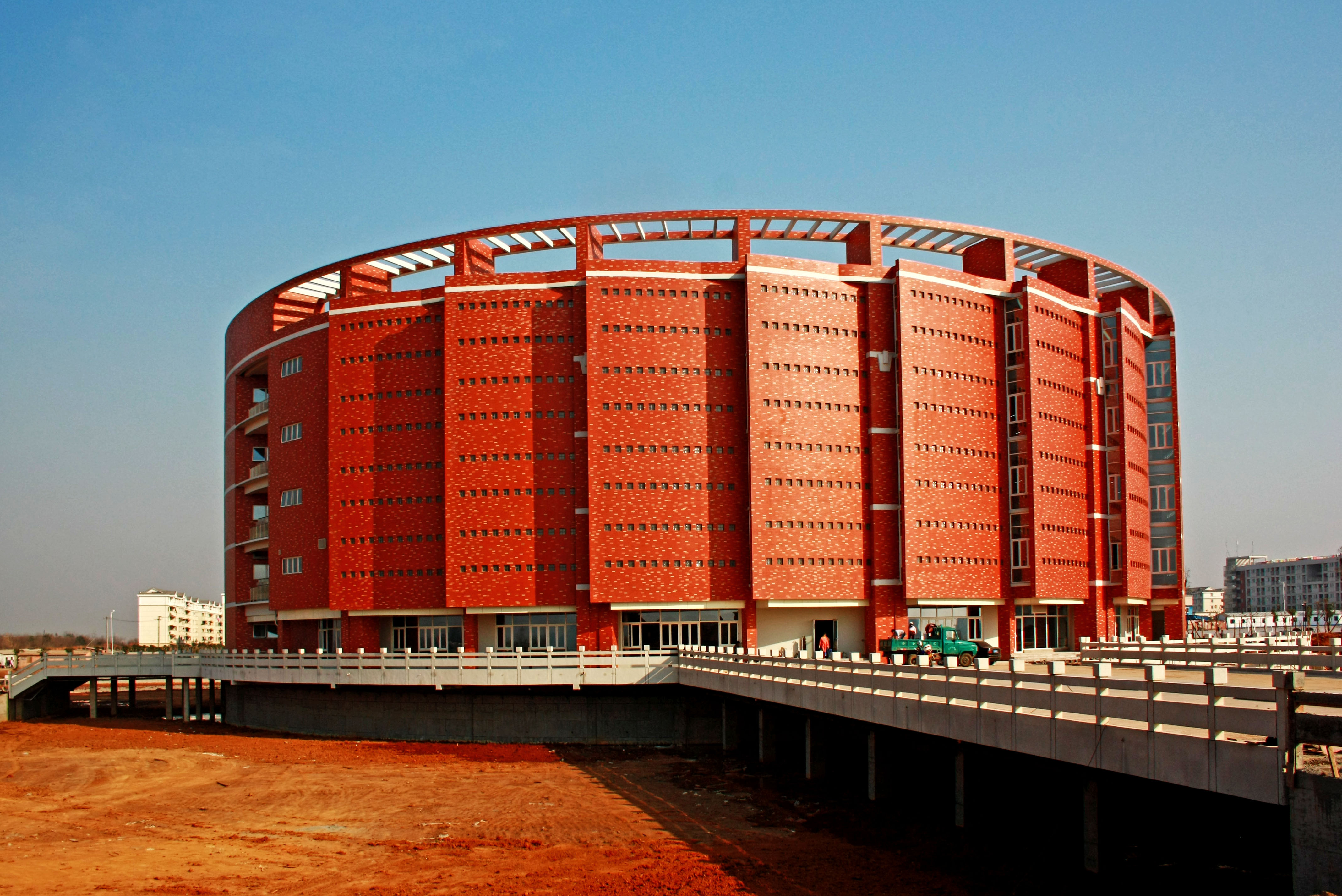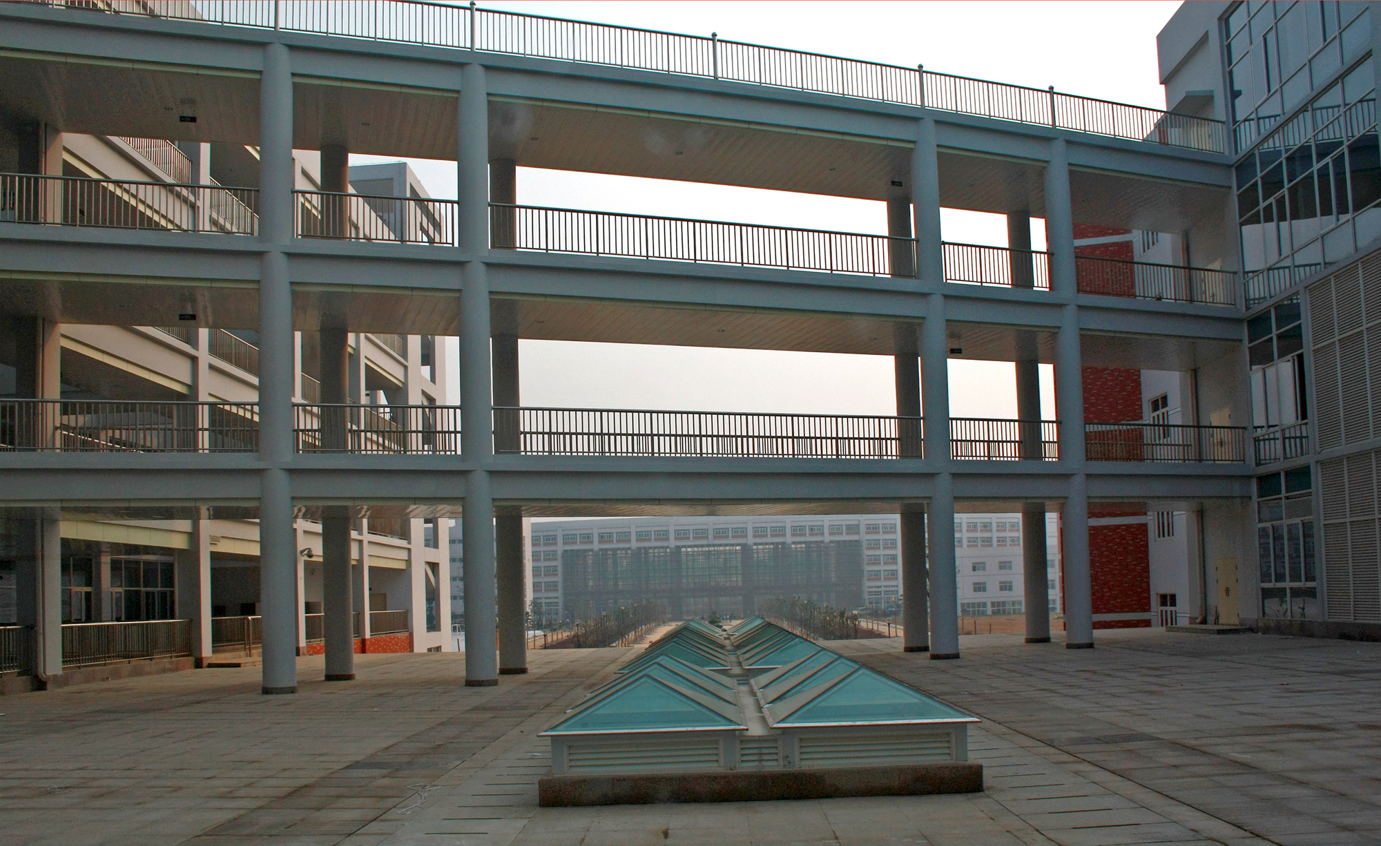新图书馆背靠后官湖,地理位置优越。在这里,不光可以眺望后官湖的美景,同时,新馆的东、西、北三面有人工湖相绕,人工湖上建有三座小桥,分别延伸到馆的两侧和后观湖大道,给图书馆增加了一份优雅宁静。