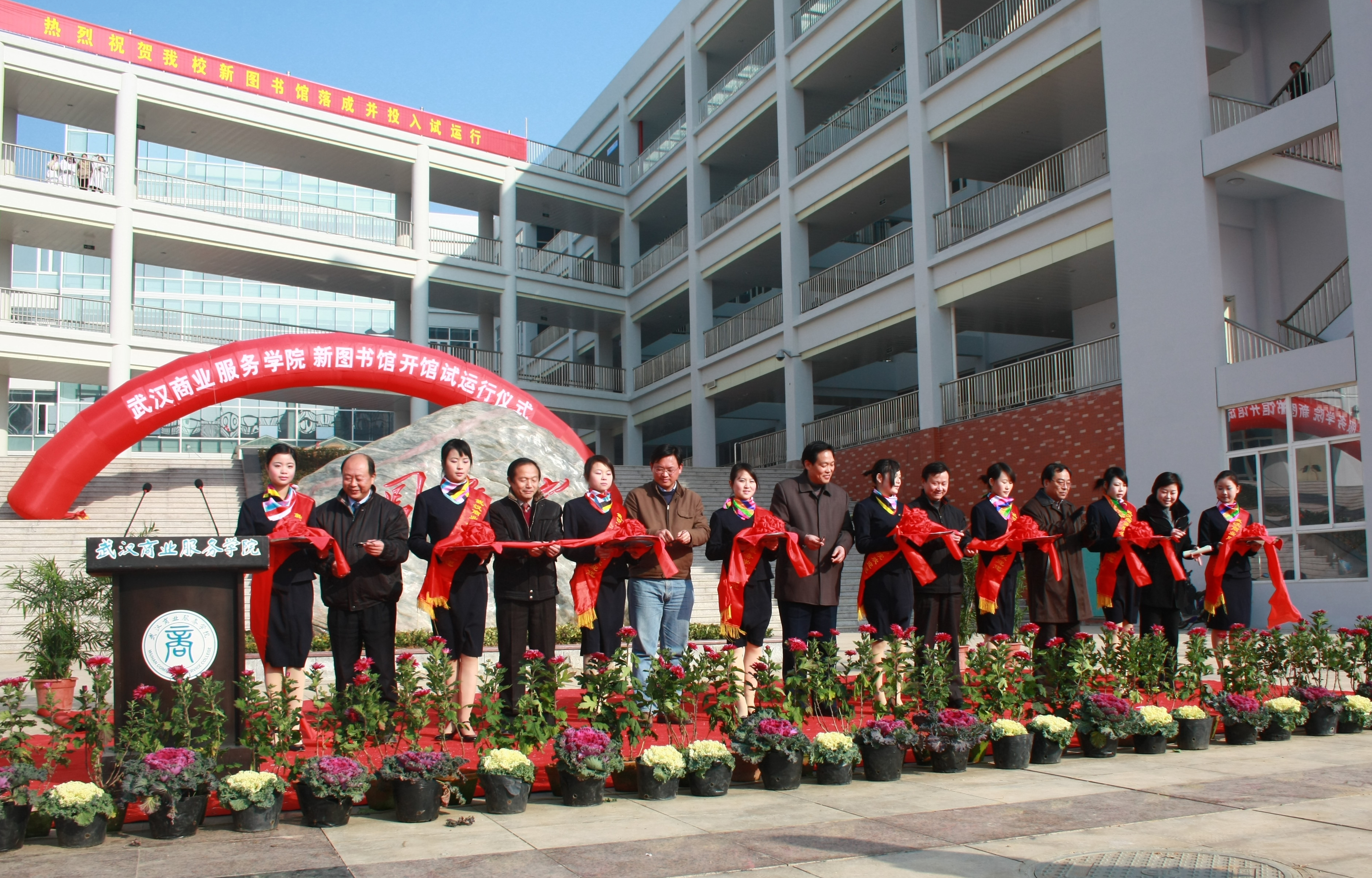 2008年12月31日上午,北区中轴线的最北端,人潮涌动,彩旗飘飘,投入5100余万元,历时一年多的建设,pg电子官网新图书馆正式开馆试运行。院长张元树、副院长王京章、刘萌、纪委书记徐俊才、副院长王清华以及各部门负责人、学生代表参加了新图书馆开馆仪式。