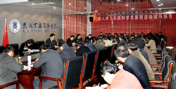 4月2号上午,在校北综508会议室,学校深入学习实践科学发展观活动首场专题报告举行。副院长王京章做了题为《关于“两型学校”建设的学习体会》的中心发言。学校全体处级以上干部出席。校深入学习实践科学观活动常务副组长徐俊才同志主持会议。