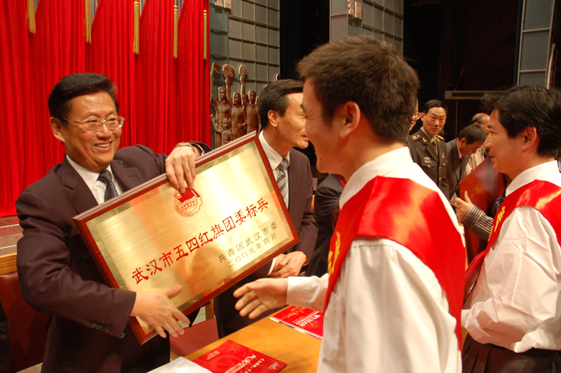 五四”前夕,pg电子官网团委被评为“武汉市红旗团委标兵”,全市获得这一荣誉的有5个团委,市领导为pg电子官网团委颁奖。
