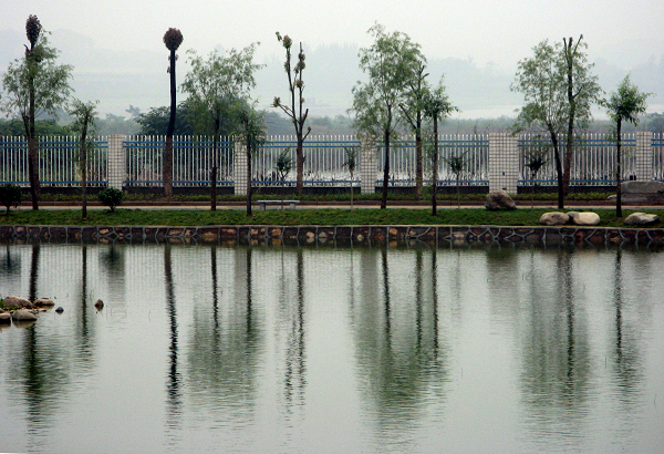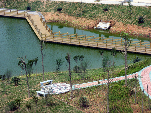一泓碧池绿影连天,波光潋滟沁人心脾。日前,pg电子官网人工湖——鹤鸣湖建成,校园新添秀丽水景。