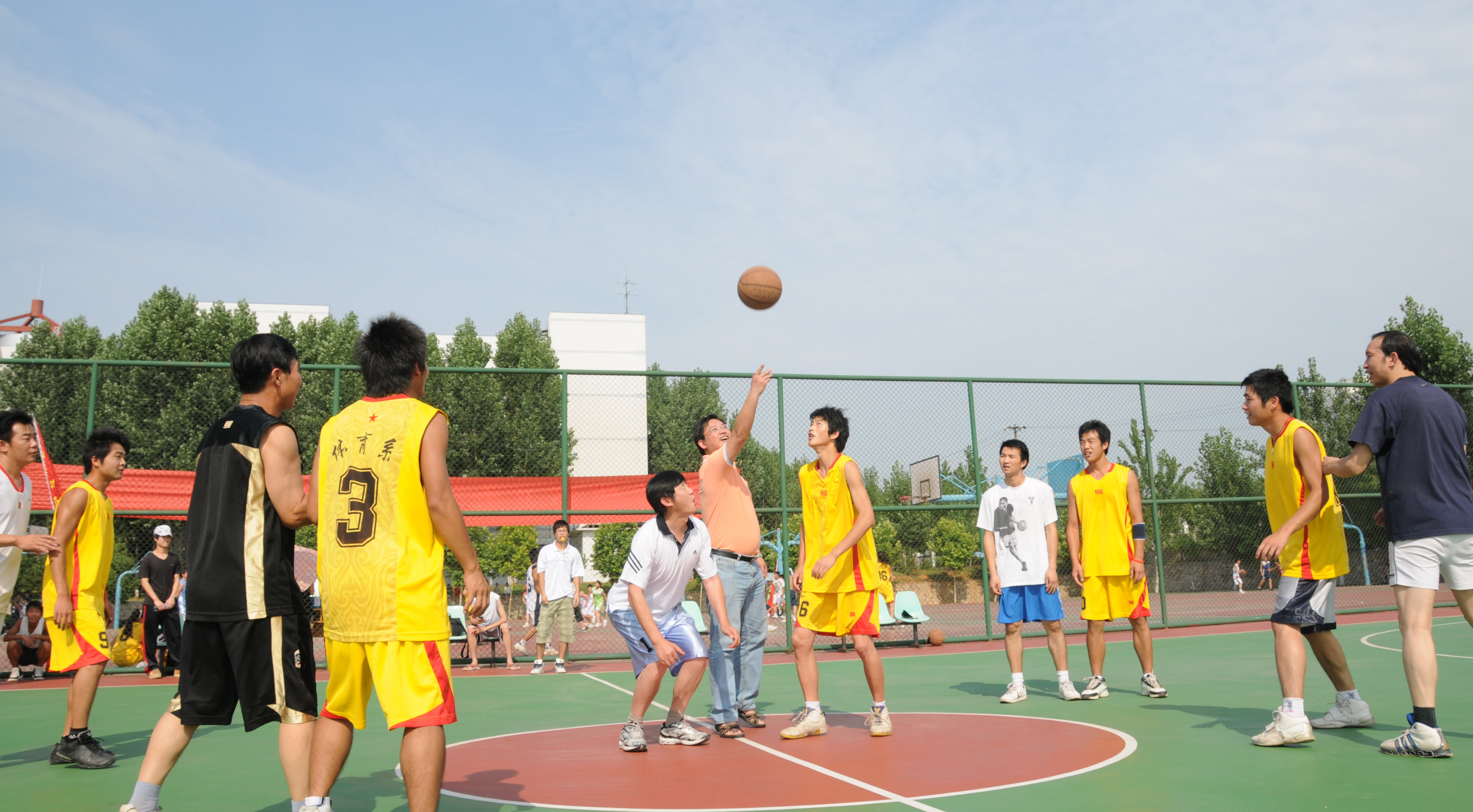 走到篮球场,烈日下,一场激烈的师生篮球对抗赛正在展开,这是体育系老师和同学们的友谊赛。看,这边老师们三分球利落漂亮,那边学生们也不甘示弱,发起快攻;“老师加油”、“学生加油”, 啦啦队一声比一声叫得响亮。在这个赛场上,师生们没有了距离,一起拼抢,一起挥洒汗水。