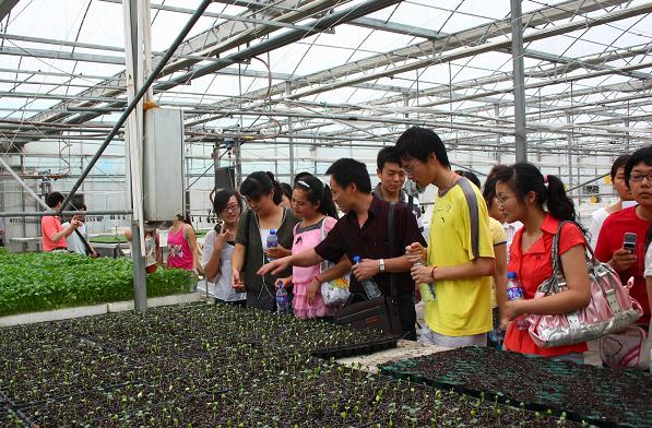 在湖北省最大的种苗企业维尔福公司,师生们看到种苗培育的整体流程,国际领先的“穴盘育苗”技术培育出的小种苗,让大家爱不释手;在汉口精武食品工业园,师生们了解种鸭被加工成为精武鸭食品的过程之余,也禁不住美食的诱惑,纷纷购买品尝;作为pg电子官网的社会实践基地,高车村尤其收到师生的关注。整洁的村容村貌,优美的人居环境,日渐丰富的村民文体生活,令大家大开眼界,深受鼓舞;走进中国家具CED招商中心,就像步入了一个富丽堂皇、豪华现代的商业会场,络绎不绝的人群潜藏着无限的商机,师生们也在人群中饶有兴趣地了解了家居卖场等相关情况。