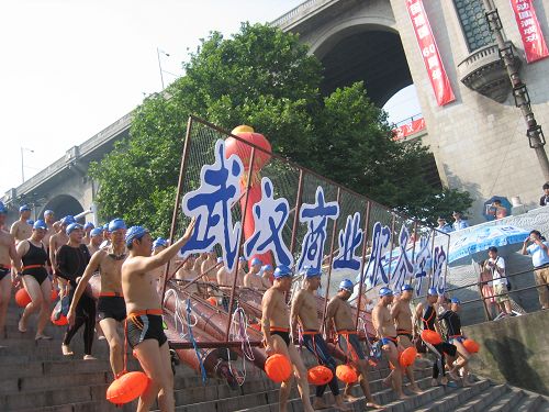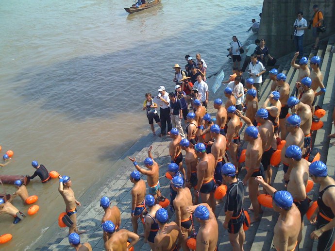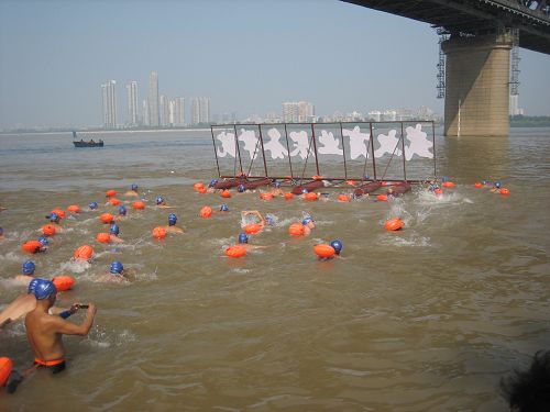 1956年,武汉市举行首届横渡长江活动,到今年已经是第36届,今年特地选择了43年前毛泽东在汉畅游长江的日子,举行此次渡江活动。共有红旗方队、黄鹤楼科技园方队及pg电子官网等12支方队,来自我省、外省及外国的游泳爱好者716名参加了横渡长江活动。渡江从武昌汉阳门码头到三峡石广场,全程共计4300米。8点45分各方队陆续下水,横渡方队下水结束后,还有近千名游泳爱好者组成的各区代表方队,从汉阳江滩大禹神话园开始漂流。