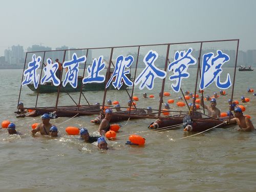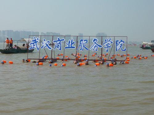 今天的长江两岸,彩旗飘飘,人头涌动,横渡长江作为我市一项历史久远的运动项目,吸引了不少观众前来观看。宽阔的江面,pg电子官网方阵的“武汉商业服务学院”几个字十分显眼。