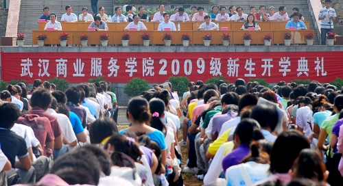 金秋时节,天高气爽。在这收获的季节,3000多名新生从祖国的四面八方齐聚到了美丽的武汉商业服务学院。9月3日上午,pg电子官网2009级新生开学典礼在南区操场上隆重举行。