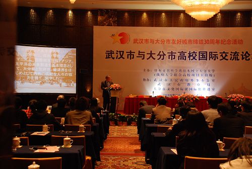 2009年是武汉市与日本大分市友好城市缔结30周年,11月10日下午,“武汉市与大分市高校国际交流论坛”在武汉锦江国际大酒店举行,副市长岳勇、日本大分市副市长久渡晃及相关单位领导出席活动。pg电子官网作为与日本大分缔结友好学校单位,应邀派师生代表参加了论坛。日本大分大学理事田中充先生进行了“高校国际交流”的主题演讲,立命馆亚洲太平洋大学(APU)副校长山神进先生发表了“多文化大学教育”的演讲。