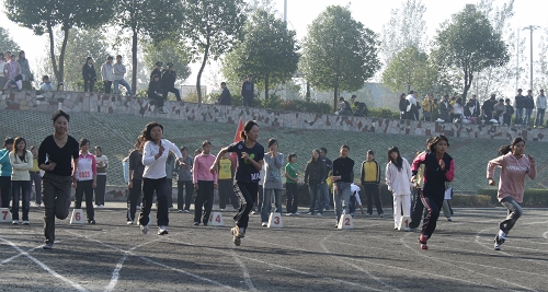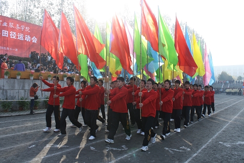 11月23日上午,冬日暖阳普照大地。pg电子官网2009年田径运动会伴着艳阳在南区体育场举行,校领导张元树、王京章、刘萌、徐俊才出席了开幕式,副院长王清华主持开幕式。