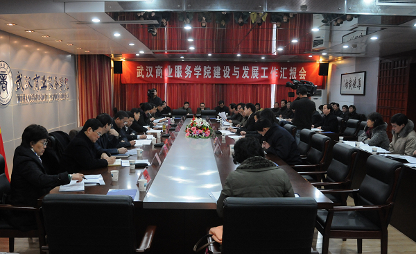 考察结束后,岳勇副市长在致远楼508会议室主持了武汉商业服务学院办学情况汇报会。校党委书记郑光喜汇报了学校建设与发展情况。郑光喜同志首先代表全校师生对杨松等省、市领导对学校的关心和支持表示衷心感谢。他从基本办学条件、人才培养质量、校企合作、社会影响等方面,介绍了学校近年来取得的成绩,下一步的建设发展规划,以及当前急需解决的主要问题。杨松等领导认真地听着汇报,不时插话提问。