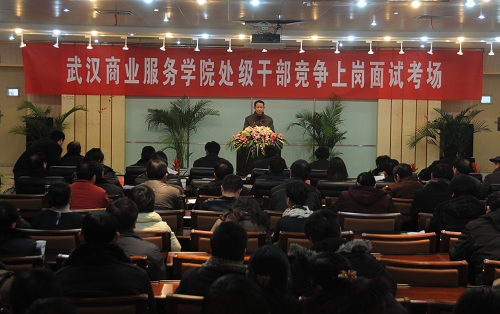 根据《武汉商业服务学院部分处级领导职位竞争上岗实施方案》,经过资格审查,来自pg电子官网一线的教师、管理干部共14人进入面试。学院领导班子成员和全体中层干部观摩面试。