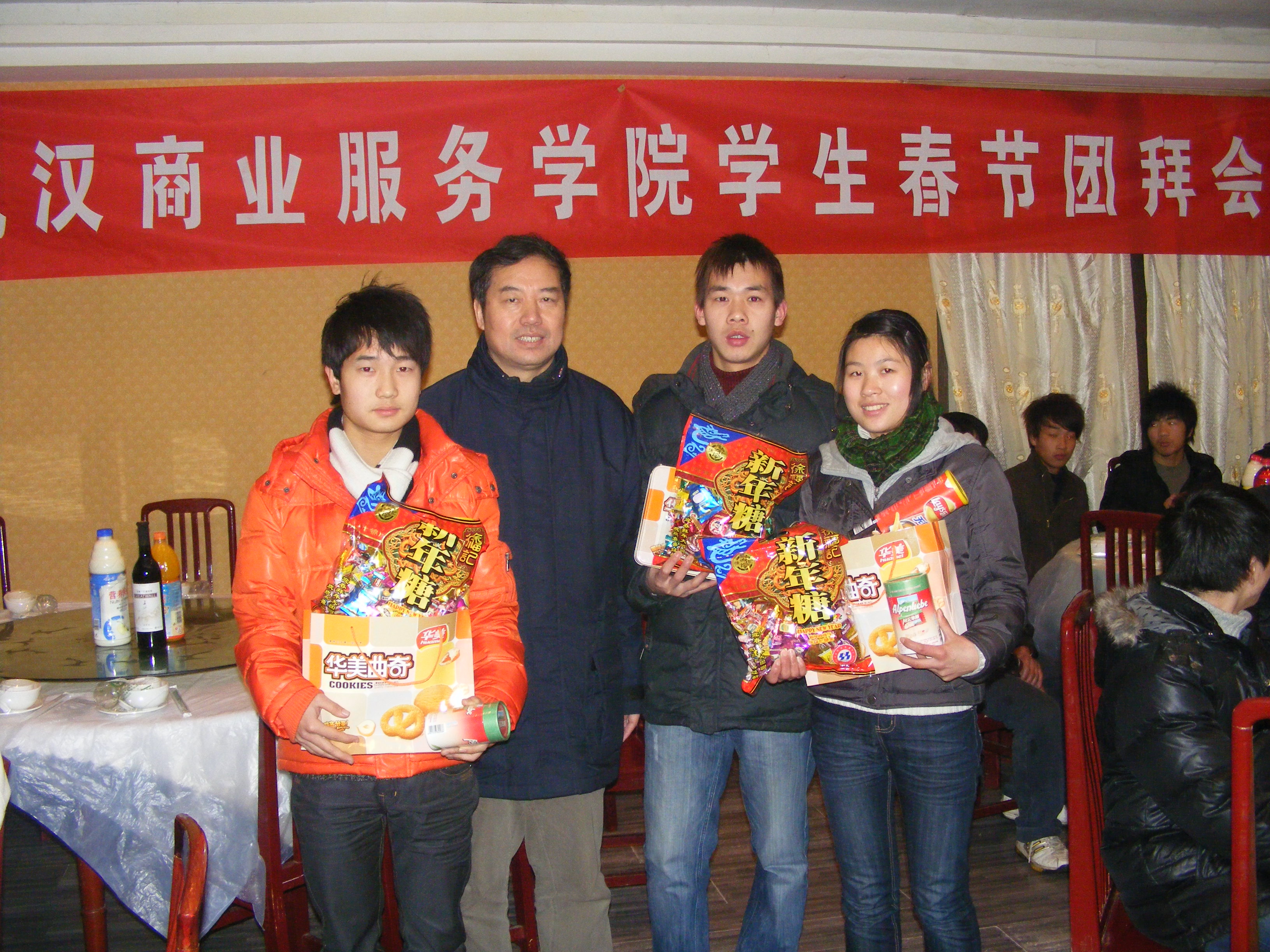 今年寒假,pg电子官网40多名学生留校。2月10日中午,党委书记郑光喜、副院长王辉华,学工处相关负责人、相关院系书记一起慰问了这些学生,与学生们共吃年饭,并给他们送上新春大礼包。
