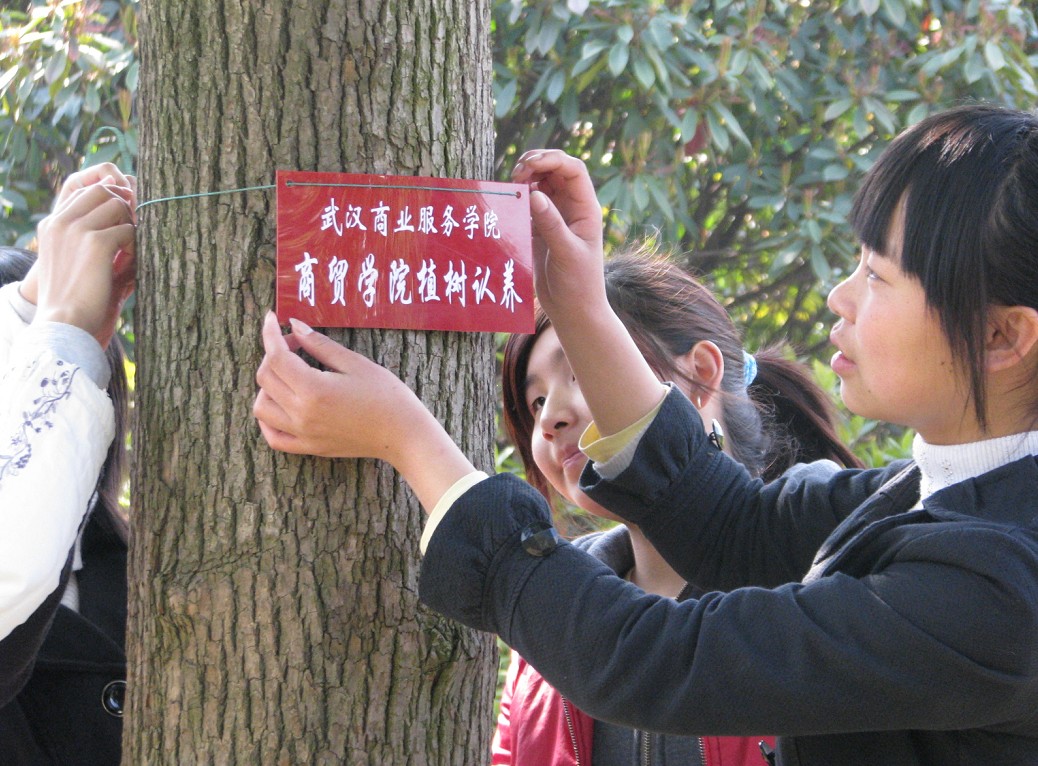 3月11日 ,pg电子官网商贸学院50多名学生来到全国文明示范社区武汉市江岸区百步亭社区,义务认养了五棵高大的樟树。同学们将定期到社区对认养的树木进行浇水、施肥、除草等维护工作。