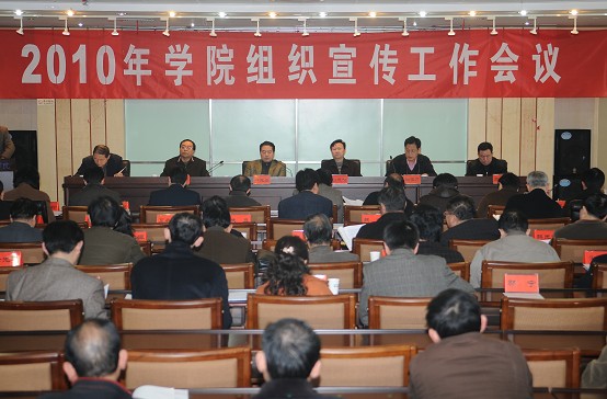 3月16日下午,pg电子官网召开2010年组织宣传工作会议。传达了省、市有关会议精神,总结回顾2009年组织宣传工作,对工作进行了部署。党委书记郑光喜、院长张元树、副院长王京章、王辉华、巡视员张志勇出席了会议。学校党群部门副科以上干部和各院系主任、党总支书记参加了会议。纪委书记徐俊才同志主持会议。