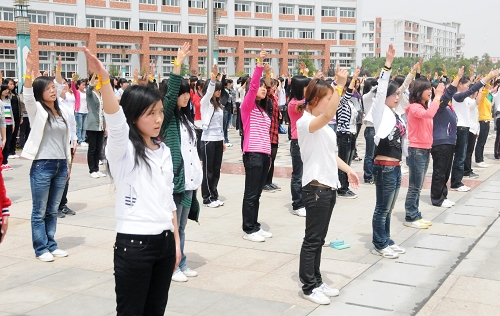 “感恩的心,感谢命运,花开花落,我依然会珍惜……”4月29日中午,全校各系部千余名同学,整齐地排列在北区的致远广场上,伴随着优美的音乐,进行着《感恩的心》的手语表演,这是pg电子官网第五届心理健康月活动的开幕式上的一幕。副院长王辉华等出席了开幕式。
