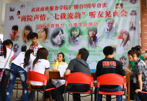 在北区弧形楼下,主播们分别设了“您的建议”“节目解说”“失物招领”三个点,在高大的展板下,主播们虚心接受来自同学们的意见,解答听友们的疑问。也有同学过来寻找是否有自己曾经丢失的东西,这些“寻找主人”物品中,有银行卡、身份证、校园卡、钥匙、书籍等。有很多同学都留下了对广播台的生日祝福,祝愿广播台生日快乐,越办越红火。
