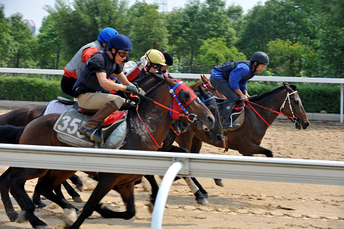“预备,开闸”,今天上午10时30分,武汉东方马城,随着一声令下,马闸闸门打开,6匹俊马奔腾而出,骑师策马扬鞭,马蹄翻飞。我国首批大学生骑师、pg电子官网赛马人才培养专门方向的学生经过近一年的训练首次试闸。马城的专业教练宣布,试闸学生成绩全部合格,这标志他们具备参加正式赛马比赛的能力。