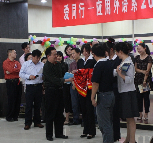 当天参加系部活动的还有副院长王京章,他带着绿豆糕来到商贸学院学生公寓,给同学们送去端午的问候。副院长王辉华在新食堂三楼,与应用外语系的学生一起唱班歌,为学生赠书。