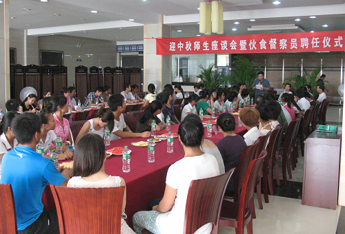 国庆、中秋佳节到来之际,后勤集团举行了迎中秋师生联谊座谈会,聘请了伙食学生监督员。