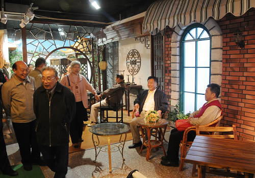 老同志饶有兴趣在应用艺术系摄影棚参观