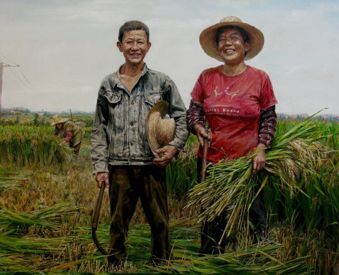 据悉,从去年中秋开始,周祖银老师在应用艺术系的支持下,开始收集素材。炎炎9月,他独自一人顶着烈日,扛着相机,走进武汉周边的农村,和农民们在一起交流,了解他们的生活、思想,捕捉瞬间,共收集了1000多张反映农村生活、劳动的相片,通过画草图、构思,历时两个多月完成作品《家园》。