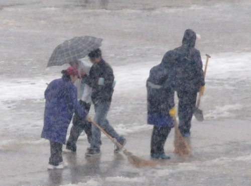 今天,后勤集团的不少工作人员提前上岗,铲除路上积雪。在学校主干道路上,有的后勤工作人员在雪中为学生引路,防止路滑造成安全隐患。