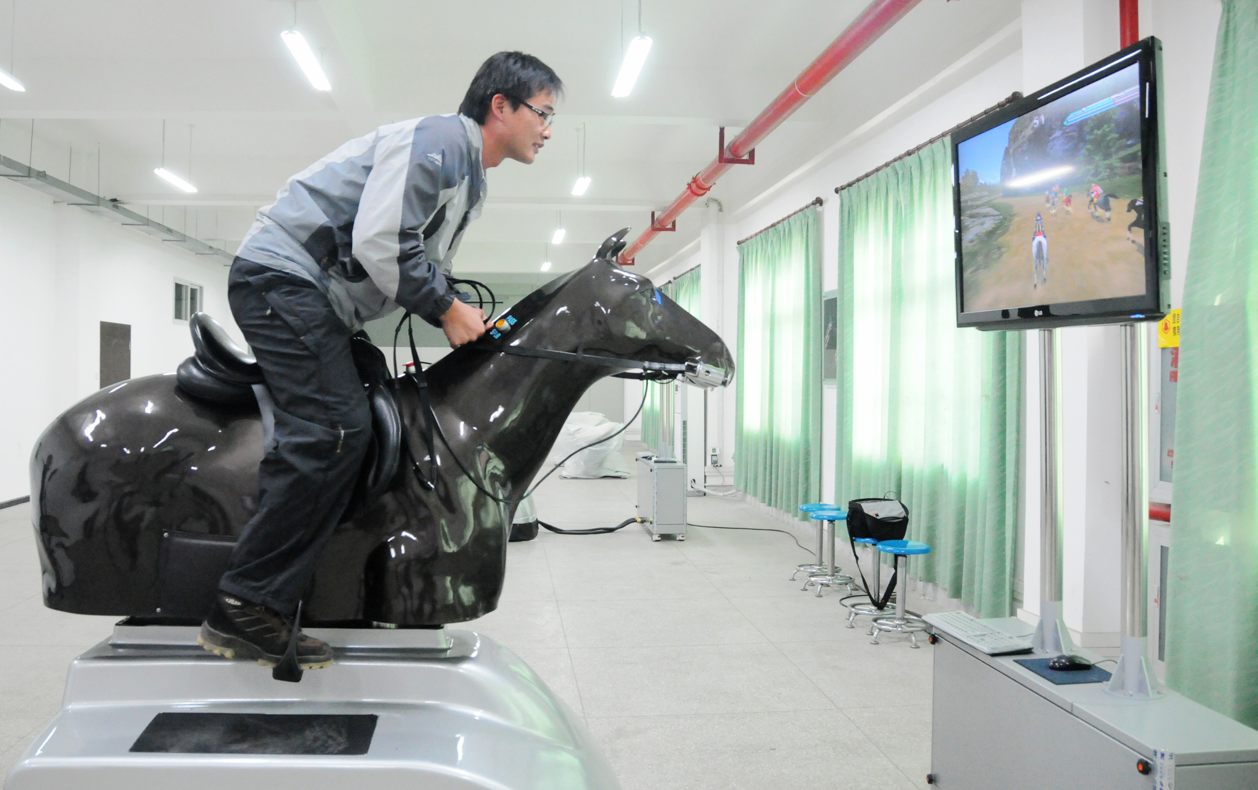 本网讯 “上马、坐直、夹紧马肚、拉住缰绳,身子随着马的前行而起伏,跨栏、跳跃”,在欢快的音乐声骏马“驰骋”,这不是在大草原,也不是在赛马场上,而是在教室。昨日,pg电子官网从韩国购进内地一批电子模拟马,学生足不出户就能进行骑术训练。