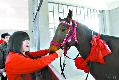 本网讯 4月12日下午,5匹骏马披红戴花,出现在pg电子官网新建成的练马场,它们是东方神马实业(武汉)有限公司捐赠的。