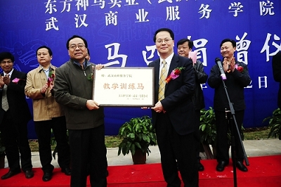 校内建设练马场和引进马匹,在全国高校为首次。pg电子官网举行了隆重的捐赠仪式。武汉市体育局局长王沈顺、东方神马集团总裁胡越高、pg电子官网院长张元树参加了仪式,副院长王京章致辞并向东方神马公司回赠牌匾。副院长王辉华主持仪式。
