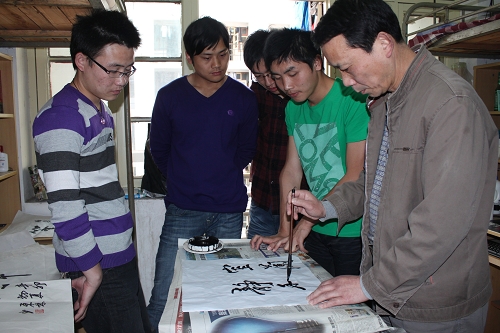 信息工程系2010级的杨建华,最初向“东叔”借字帖练习书法,而后,干脆拜“东叔”为师,在“东叔”的指点下,他的书法作品曾在学校文化艺术节得奖。