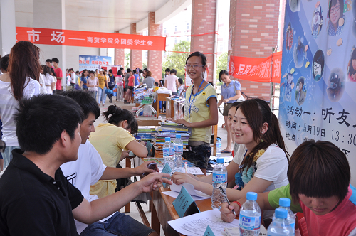 19日下午13:30,北区教学楼下,听友见面会如期举行。大幅的展板上,广播台的每一位成员的笑脸洋溢着青春的气息。广播台节目推介、答听友问、“一份祝福一份心意”、温馨帮助站等活动吸引众多学生驻足。广播台成员热情地向同学们发放节目传单,详细介绍节目内容和特色,聆听大家的意见,将台内的失物搬出来供失主寻找。