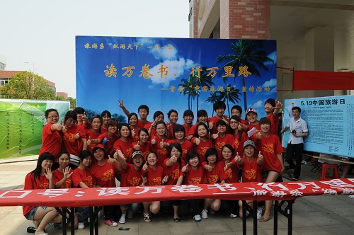 本网讯 5月19日是首个“中国旅游日”。旅游系校园文化“一系一品”升级版“纵游天下”亮相,既为“中国旅游日”营造了氛围,又宣传了专业,展示了旅游系学生青春与激情。