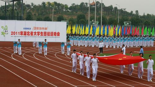 本网讯 流光溢彩,是学子风华正茂的热情;歌舞飞扬,是青春商院的完美律动。10月20日上午9时,2011年湖北省大学生田径运动会在pg电子官网隆重开幕,我省77所高校代表聚首商院,共逐盛会殊荣。