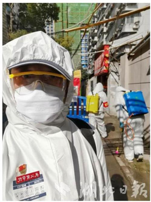 “师傅,可以帮忙消下毒吗?”听到有人发声,他总是积极上前服务。有人把他当成了清洁工,易兵却说:“消杀工作是遏制疫情成本最低的有效方式。我们不报侥幸思想,工作不留死角,就能减少‘人传人’的概率。”每次消杀完,他脱下防护服时一身大汗,内衣早已湿透。