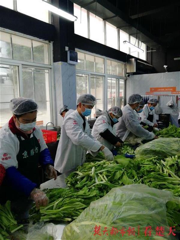 目前,参与火神山医院、雷神山医院餐饮服务的人员有130余人,他们每天需要为一万多人次提供餐饮服务,高峰期达到2.4万人次。徐康介绍,疫情来得突然,团队里的130余人几乎每天都是连轴转,各个岗位的工作量是平时的3倍,常常上一餐刚处理完毕,下一餐的原材料就已经被搬上了操作台。凌晨三点,制作早餐的员工已经上岗,而每个供餐车的司机,同时也充当着搬运工的角色。