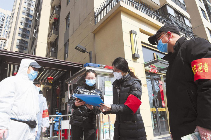 强化社区防控力量,织密疫情“防控网”,机关党员干部齐上阵,与社区工作者并肩战斗,当好守门员、疏导员、跑腿员。