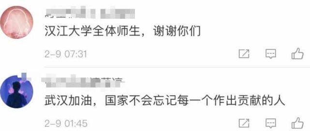 江汉大学在致同学的一封信中写道:疫情当前,军令当前!我们相信江汉大学的全体同学们一定会以高度的思想觉悟、法律意识和责任担当,继续发扬军运会志愿者的奉献、担当精神,顾全大局,团结一致、服从指挥。与江汉大学、与武汉市同呼吸、共命运,为打赢防控攻坚战作出我们每个同学应有的贡献!
