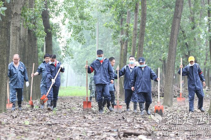 第一小组组长童曙在疫情期间下沉到新洲区从事疫情防控工作,现在和队员们一起守卫着每一寸堤坝安全。为了做到全覆盖,童曙带领队员们反复用手破开草丛、按压土壤,查找内坡有无浸漏、管涌等危情,不放过一丝一毫的可疑情况。