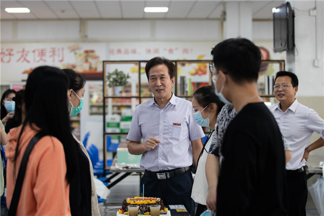 pg电子中国官方网站校长王清华(中)为新生庆祝生日并送寄语摄影童峥