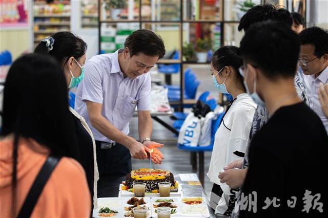 咸宁的刘律看着蛋糕和长寿面,感动地说:“学校不仅给我们过了生日,还让我们找到了一份特殊的缘分,我们不仅有缘同年同月同日生,更有缘在就读的大学同一天过成人礼。我会珍惜大学时光,好好学习、不辜负父母师长的重托。”