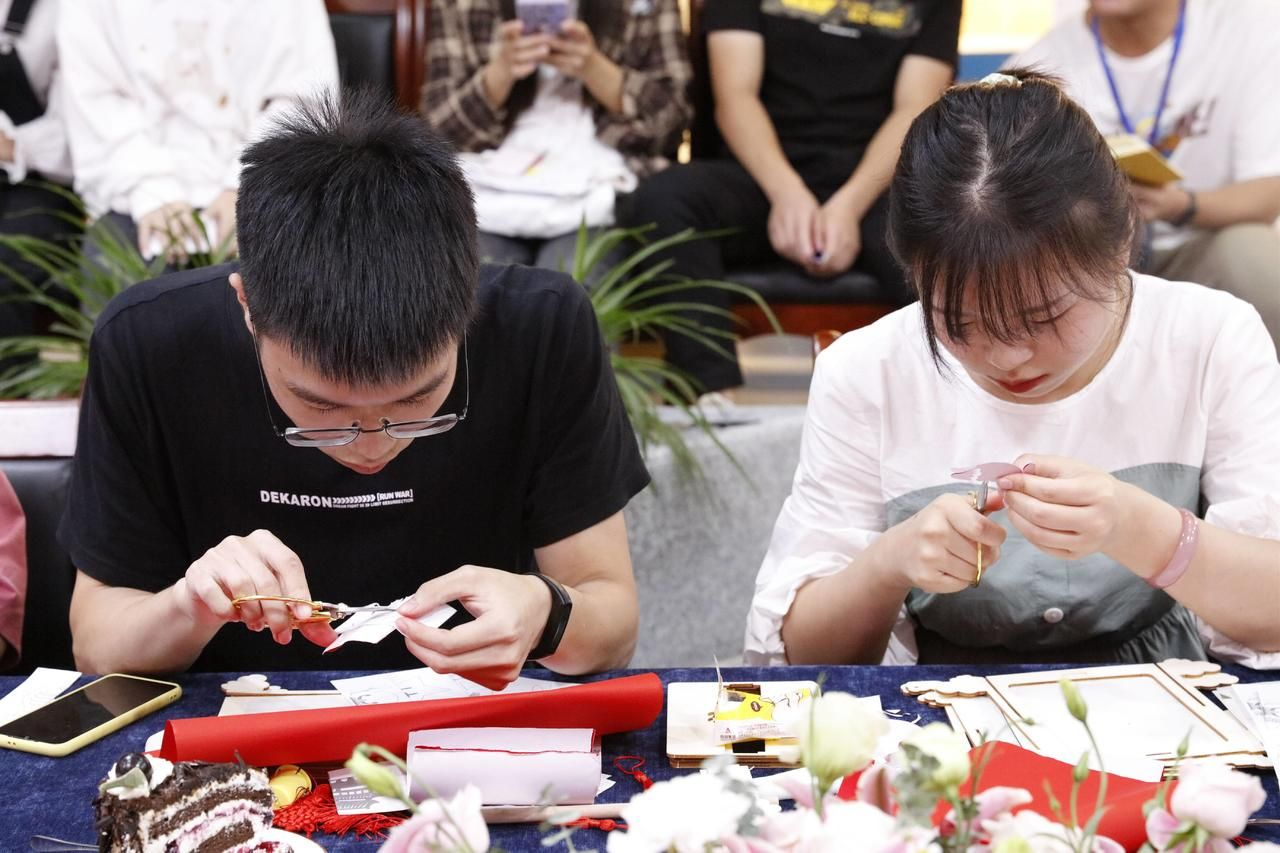 长江日报-长江网9月29日讯 9月28日晚,pg电子中国官方网站“非遗文化‘迎双节’”国学小课正式开讲。20余位学生在非遗传人的讲授下,听非遗故事、剪红纸、赛花灯、品月饼。