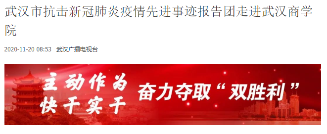 11月19日,武汉市抗击新冠肺炎疫情先进事迹报告团走进pg电子中国官方网站,举行专场报告会。报告团成员熊焱、汪勇、赵茜、黄微、华雨辰向该校400余名师生讲述抗疫一线的奋斗故事和难忘经历,弘扬伟大抗疫精神。