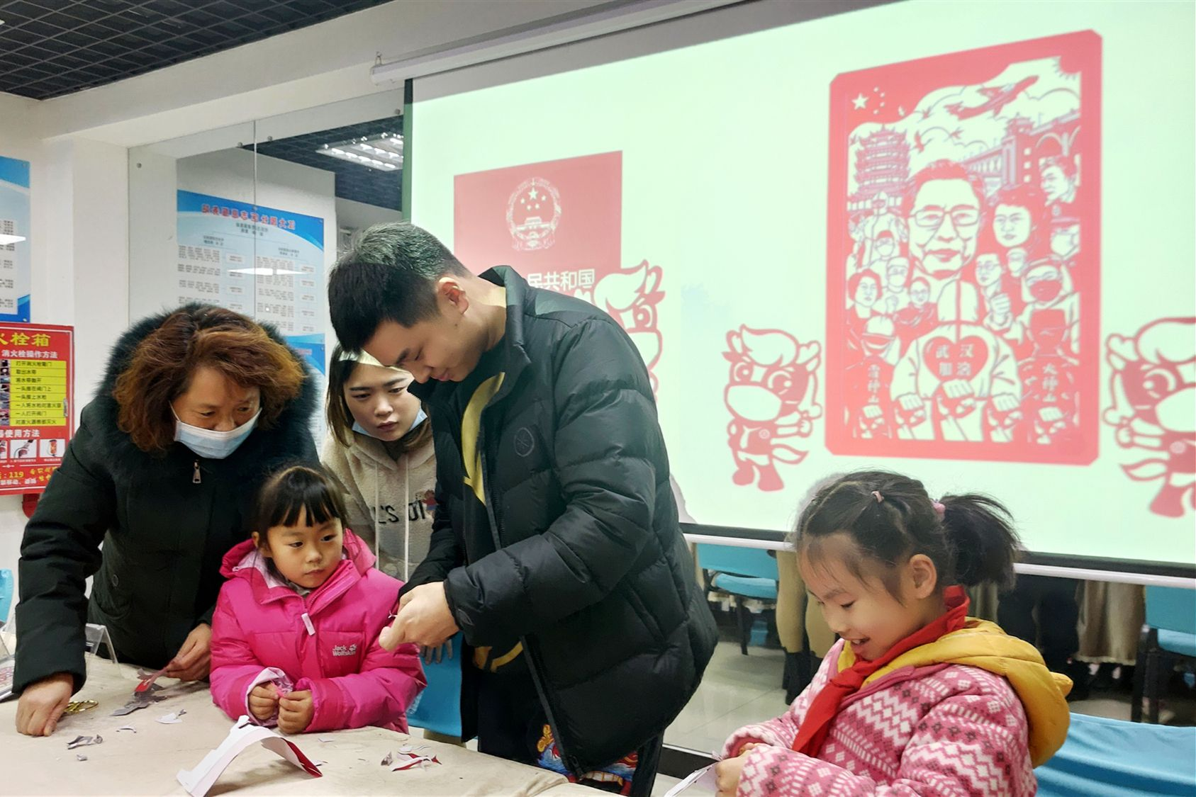 12月2日,在江大园社区,pg电子中国官方网站教师、渚河剪纸第三代传承人周坤现场展示宪法、民法典、疫情防控相关元素剪纸作品并教居民剪纸,引起了不少居民的兴趣。周坤一边演示,一边向社区居民讲述剪纸文化的发展、剪纸中常见的文化元素。江大园社区共建项目负责人、社区副书记熊佳静表示:“这次剪纸活动举办得非常成功,社区居民反响很好。希望社区与学校合作多开展类似的活动,丰富居民生活,提高法治意识。”